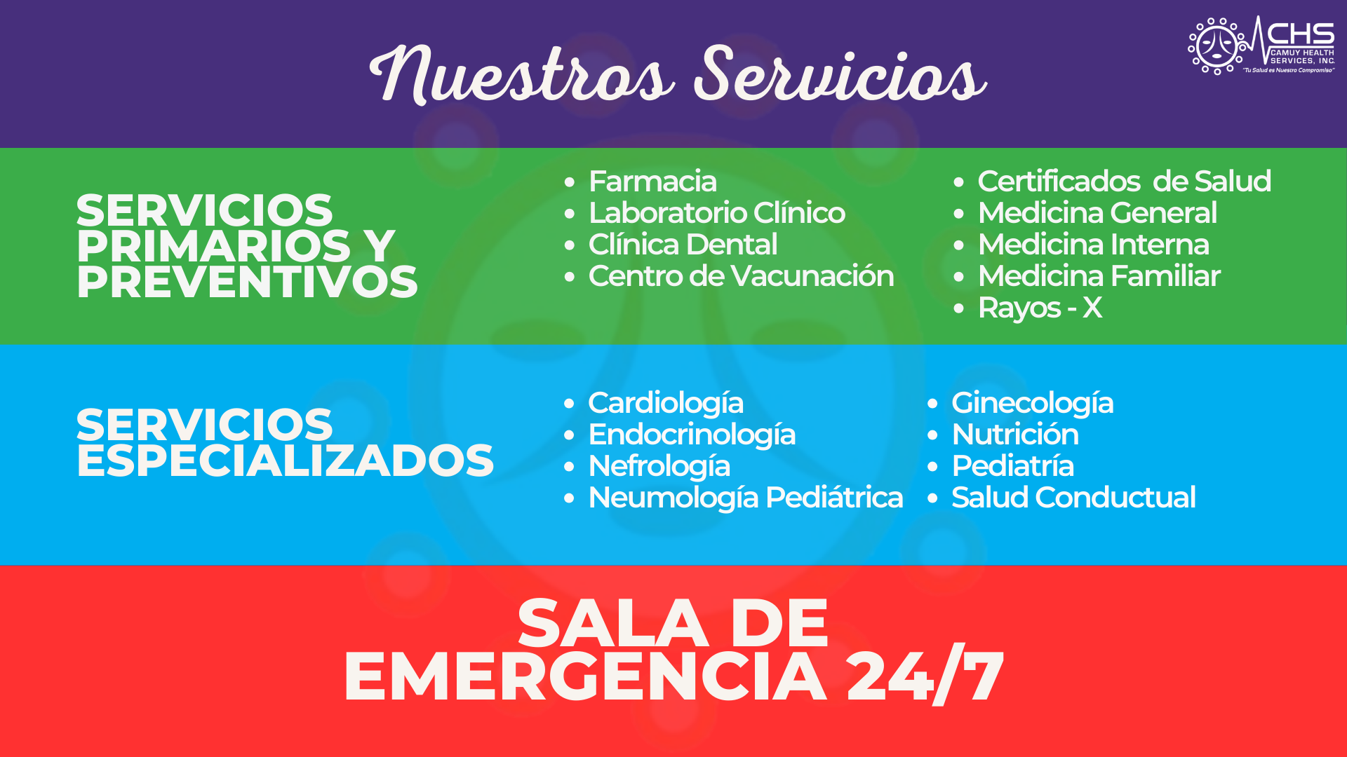 En Camuy Health Services, Inc. aceptamos todas las aseguradoras bajo el Plan de Salud del Gobierno de Puerto Rico y la mayoría de los Planes Médicos Privados y Medicare Advantage. Gracias por habernos seleccionado como su Centro de Servicios de Salud Primario.